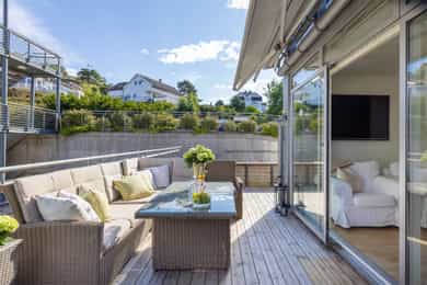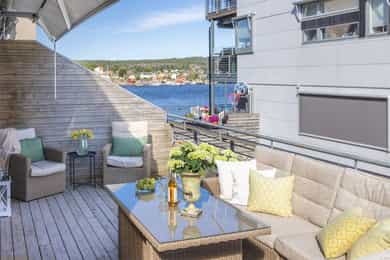 Lys og stilren 3-roms endeleilighet ved vannkanten på idylliske Kråkerøy - stor terrasse, båtplass og p-plasser.