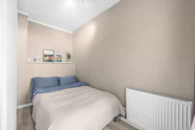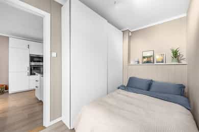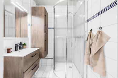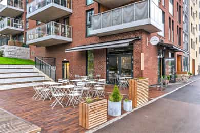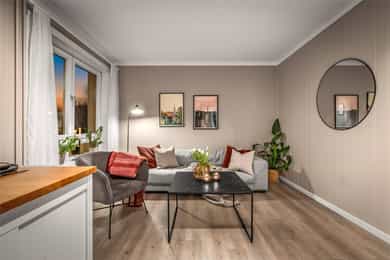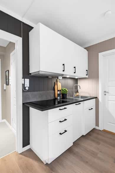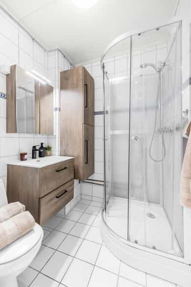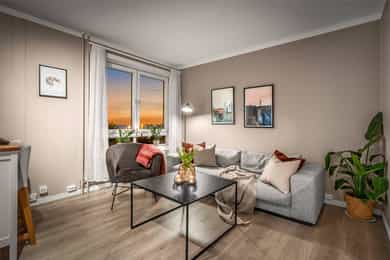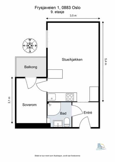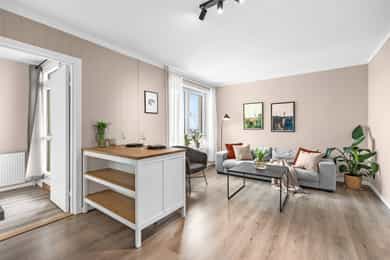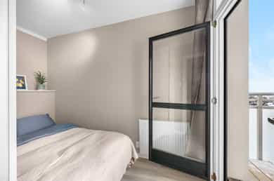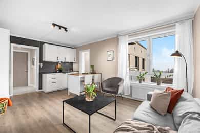 HJERTELIG VELKOMMEN TIL FRYSJAVEIEN 1 I denne hyggelige leiligheten i 9. etasje bor du høyt og fritt, med heis, glimt av fjorden og utsyn over deler av byen. Den luftige beliggenheten gir gode lysforhold og en fin romfølelse. Boligen er lys og innbydende, med varme, nøytrale toner og materialvalg som gir et lunt og helhetlig preg. Planløsningen er funksjonell, med entré, åpen stue- og kjøkkenløsning med plass til både sofa- og spisegruppe, ett soverom og baderom - godt tilrettelagt for en enkel og komfortabel hverdag. Her ligger alt til rette for at du skal trives! FREMTREDENDE KVALITETER