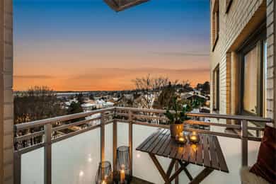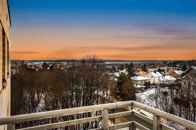 Flott 2-roms toppleilighet m/balkong og fjordutsikt - Heis - Varmtvann/fyring inkl. - Nær marka og sentral beliggenhet