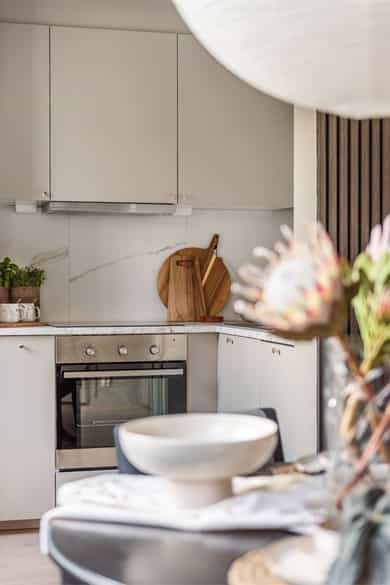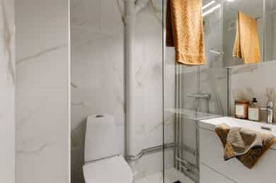Entré Gang med noe avhengingsmuligheter, adkomst til bad og åpent inn til stuen. Stue Innbydende, åpen og fin stue med slette vegger og spilevegg. Det er innfelt ledlys i tak, samt at det er lyspunkt for lampe over spisebord. Stuen er romslig nok til å romme både sofakrok og spiseplass, åpen løsning inn til koselig kjøkken krok. Fra stue er det adkomst ut til sørøst vendt balkong. Kjøkken Nytt kjøkken i 2025 i en beige lun tone med et minimalistisk preg. Innredningen har laminerte skrog og slette fronter. Laminert benkeplate med oppvasskum i metall med beslag og avrenning. Fliser i benkeryggen. Det er integrerte hvitevarer. Bad, wc og vaskerom Lekkert helfliset bad med 60x60 fliser, malte slette flater i himlingen. Lys innredning med slette fronter, heldekkende servant og tilhørende speilskap over med belysning. Dusjhjørne med glassvegger og gulvmontert toalett. Det er varme i gulvet, ventil på vegg og tilluft via dør. Felles vaskeri i kjeller. Soverom Pent og innbydende soverom med slette vegger og spilevegg. Stilig ledlys i spilevegg. Det er plass til seng og noe oppevaringsmøbler, overskap vil være en praktisk løsning for å utnytte plassen best mulig. Lagring Tilhørende nettingbod i kjeller for oppbevaring. Tekniske installasjoner Synlige vannrør i kobber/metall. Synlige avløpsrør i plast. Varmtvannsbereder plassert i kjeller. Leiligheten har naturlig ventilasjon. El-anlegg med automatsikringer, inntaks sikring er skrusikring. I hovedsak skjult ledningsnett. Sikringsskapet er plassert i felles gang. Generelle materialvalg Innvendige gulv med laminat. Vegger med malte glatte flater og spilevegger. Himlinger med malte glatte flater. Slette glatte innerdører. _______________________________________ Det er i forbindelse med salget utarbeidet en tilstandsrapport fra bygningssakkyndig. Tilstandsrapporten er en teknisk gjennomgang av boligen med oppdagede avvik. Forhold som har fått TG2 og TG3 må gjennomgås spesielt nøye, da disse indikerer avvik fra normal slitasje og/eller høy alder, med mulig behov for utbedring. Bygningsdeler som har fått TGIU er ikke undersøkt av takstmann. Bygningsdeler som har fått TG2: - Innvendig > Radon Avvik: Radonmålinger er ikke foretatt, heller ikke andre tiltak mot radon, eiendommen ligger i et område som i NGU Radon aktsomhetskart er definert med "moderat til lav" aktsomhetsgrad - Tekniske installasjoner > Vannledninger Avvik: Vurdering er basert på alder. Tilstandsgrad 2 gis med bakgrunn i at mer enn halvparten av forventet brukstid for skjulte røranlegg er passert. Det er nå ingen symptomer på funksjonssvekkelse, men vær oppmerksom på at dette er en risikokonstruksjon. - Tekniske installasjoner > Avløpsrør Avvik: Vurdering er basert på alder. Tilstandsgrad 2 gis med bakgrunn i at mer enn halvparten av forventet brukstid for skjulte røranlegg er passert. Det er nå ingen symptomer på funksjonssvekkelse, men vær oppmerksom på at dette er en risikokonstruksjon. Eldre jernrør kan være utsatt for rust/groing og gi redusert gjennomstrømning/risiko for lekkasjer. Alder er normalt i seg selv en vurderingskriterier hva angår slitasjegrad. Utvendige vann og avløpsrør som begynner å bli gamle vil ha en helt naturlig slitasjegrad. - Tekniske installasjoner > Ventilasjon Avvik: Ventilasjonen i boligen tilfredsstiller ikke dagens krav til klima og miljø. Boligen fungerer med dette avviket, men det bør vurderes energibesparende tiltak. - Våtrom > 2. etasje > Bad > Sluk, membran og tettesjikt Avvik: Vurdering basert på alder. Tilstandsgrad 2 gis med bakgrunn i at mer enn halvparten av forventet brukstid for membran/tettesjikt er passert. Det er nå ingen symptomer på funksjonssvekkelse, men vær oppmerksom på at dette er en risikokonstruksjon. Bygningsdeler som har fått TG3: - Ingen. Bygningsdeler som ikke er undersøkt (TGIU): - Tekniske installasjoner > Varmtvannstank Avvik: Varmtvannsberedere er sentralt plassert i kjeller. - Våtrom > 2. etasje > Bad > Tilliggende konstruksjoner våtrom Avvik: Hulltaking er ikke foretatt da det ikke er fysisk mulig pga. tilliggende konstruksjoner.