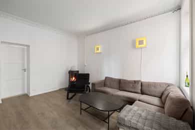 Effektiv 4-roms selveierleilighet med 3m takhøyde, peis og stukkatur. Stue vendt mot bakgård. Ettertraktet beliggenhet