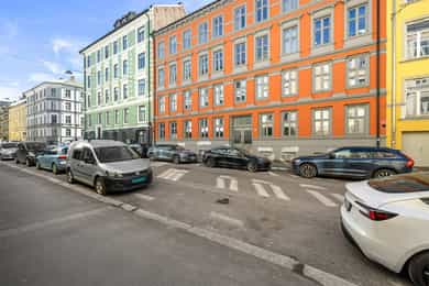 Det medfølger ikke parkeringsplass. Det er beboerparkering i området. Ved anskaffelse av beboerparkering kan man parkere døgnet rundt – også utover det som er maksimal parkeringstid - på parkeringsplasser regulert til beboerparkering. Priser for beboerparkering i bydel Frogner, St. Hanshaugen, Gamle Oslo, Grünerløkka og Sagene, parkeringssone A, B, C, D og E: Bensinbil, dieselbil, hybridbil, ladbar hybridbil: 3.850 kroner for ett år Motorsykkel og moped: 1.925 kroner for ett år El-bil: 1.300 kroner for ett år El-motorsykkel og el-moped: 650 kroner for ett år Det tas forbehold om prisendringer. For mer informasjon se: https://www.oslo.kommune.no/gate-transport-og-parkering/parkering/beboerparkering/.
