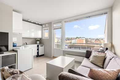 Lys toppleilighet med solrik balkong og sentral beliggenhet