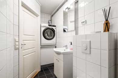 Flislagt bad med varmekabler og opplegg for vaskemaskin