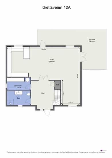 BRA-i: 85 kvm. Hall m/trapp, bad, vaskerom, kott og stue/kjøkken.