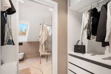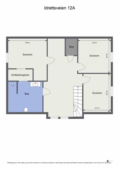 BRA-i: 59 kvm. Loftstue/trapperom, bad, soverom, soverom 2, soverom 3, omkledningsrom og bod.