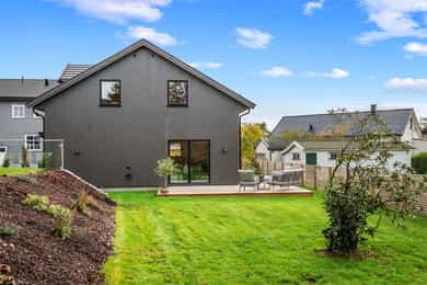 Splitter ny, ubebodd enebolig fra 2025 med terrasse på 34 m² - 3 soverom, 2 bad og carport m/lader - Barnevennlig!