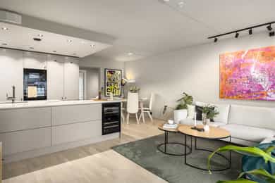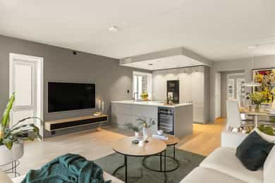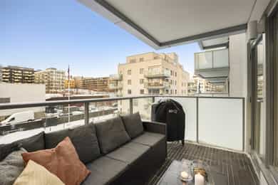 Velkommen til Gladengveien 4L - en gjennomført og nyoppusset 4-roms andelsleilighet med attraktiv beliggenet rett ved Ensjø T-banestasjon.  Endeleilighet med store vindusflater og gode lysforhold. Boligen har tre soverom, to flislagte bad og to balkonger på totalt ca. 14 kvm. Kjøkkenet er nytt fra 24 og holder en god standard med kjøkkenøy og integrerte hvitevarer. Overflater og gulv er gjennomgående oppgradert i 24, og begge bad har fått ny innredning i 25. Smart lysstyring og app-styrt inngang. Høydepunkter: - Rett til leie av parkeringsplass i felles, oppvarmet garasjeanlegg. - IN-ordning. Ved full innfrielse av andel fellesgjeld vil felleskostnader reduseres til kr 6 559,- per mnd. - Nytt kjøkken fra 2024 - Smart styring og app-basert inngang - VV og fyring inkl. - Kjellerbod på 4kvm.