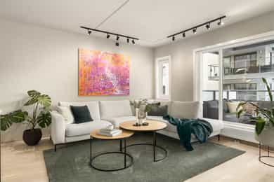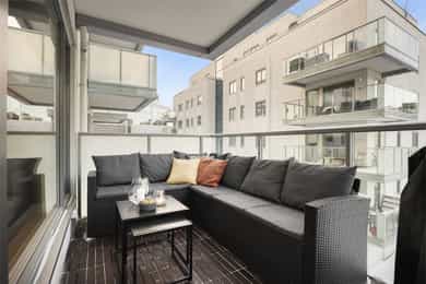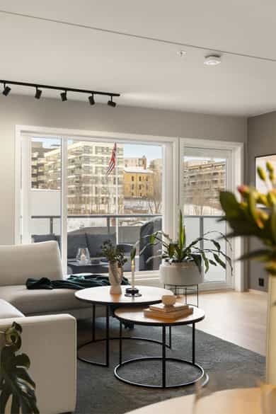 Moderne og gjennomgående 4-roms m/ 2 balkonger og 2 bad - Kjøkken fra 2024 - VV og fyring inkl - Rett til garasjeleie