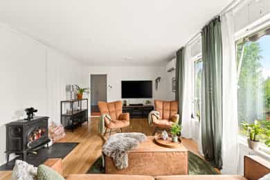 Koselig enebolig over 1 plan m/kjeller, 3 sov, terrasse fra 2023, ingen TG3 - og barnevennlig beliggenhet!