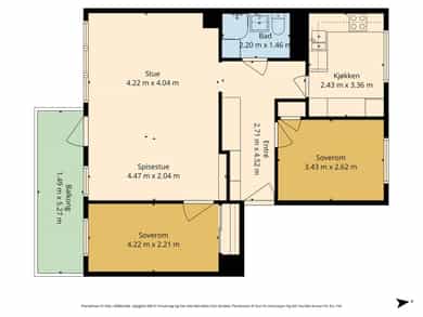 BRA-i: 71 kvm. Kjøkken, bad, entré, soverom, soverom 2, stue