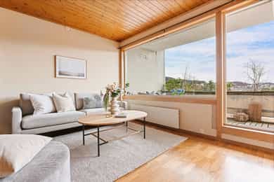 Hvorfor bosette seg i Fyllingsdalen? Området er et etablert boligområde og har vært under stor utvikling i de senere år. Området bærer preg av god boligplanlegging - her finner man en flott blanding av leiligheter, rekkehus og eneboliger. De aller fleste blir boende i sine boliger i mange år eller oppgraderer internt i området. Selve Tjernet borettslag er et svært populært borettslag grunnet sin korte vei til Oasen senter og ikke minst de store, flotte grøntarealene. Her bor det en god miks av eldre, barnefamilier og førstegangskjøpere. Området er svært populært for barnefamilier - mye grunnet den umiddelbare nærheten til matbutikk, barnehager, lekeplasser, grøntområder og skole. For de eldre og etablerte byr området på en enkel hverdag med kort vei til de daglige servicetilbudene på Oasen og flotte turområder. Praktisk! Fra denne boligen har du kort gange til alt det overnevnte. Bosett deg i et borettslag med store grøntarealer, samtidig med kort gange til Oasen senter og busstopp. Fyllingsdalen har sitt navn fra gården Fyllingen, og visstnok stammer navnet fra det norrøne ordet fela, som betyr å gjemme eller skjule. Og det er jo det Fyllingsdalen er, en skjult perle! Her har du alt du trenger for å bo godt nær bykjernen. Oasen kjøpesenter sørger for å tilby alle daglige servicetilbud, det er flere idrettsanlegg, flotte turløyper og flust av gode skoler og barnehager i nærområdet. Området er meget sentralt, med bare rundt 15 minutters kjøring til Bergen sentrum. Den samme avstanden er det motsatt vei til Flesland som kan føre deg ut i den vide verden. Kollektivtilbud Fra boligen har du tilgang til flere bussruter, inn og ut av bykjernen. Nærmeste busstopp er Tjernet, hvor linje 18 går. For et mer utvidet tilbud er det ikke lange veien å gå til Skarphaugen eller Fyllingsdalen terminal. Bybanen linje 2 går fra Fyllingsdalen terminal og tar deg til Kronstad, Haukeland sykehus og sentrumskjernen. I tillegg åpnet gang- og sykkeltunnelen parallelt med bybanen gjennom Løvstakken til Kristianborg (Fjøsanger). Kort gange til Oasen senter Oasen senter er ofte omtalt som sentrum i en trivelig bydel, med sitt tilbud innenfor helse, kultur og handel. Senteret ble utvidet med 8 000 kvm og sto ferdig i november 2014. Oasen har etter utvidelsen rundt 70 butikker, vinmonopol, frisør, apotek, legesenter m.m. Et praktisk kjøpesenter som oppfyller alle hverdagslige behov. Videre er Bergen sentrum med alt bykjernen kan tilby kun en 8 minutters biltur unna, og rundt 15 korte minutters busstur unna. For barna - skoler og barnehager 0.6 km - Løvåsbakken barnehage 0-5 år 0.7 km - Lekeklossen Løvåsen barnehage 0.8 km - Kanadaskoken friluftsbarnehage 1.0 km - Seljedalen skole 1-7 klasse 1.0 km - Løvås oppveksttun 1-7 klasse 1.2 km - Fyllingsdalen videregående skole Hvor skal søndagsturen gå? Til tross for den gode beliggenheten, er du likevel omkranset av grønne områder og mange flotte turmuligheter, Kanadaskogen, Løvstakken, Lynghaugtjernet og Krohnegården for å nevne noen. Vakre Ortuvannet er også et yndet turmål.