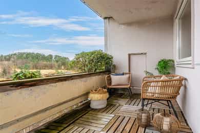 Oppussingsobjekt! Romslig 4-roms leilighet med 14 kvm balkong, garasjeplass og stort potensial. Varmtvann inkludert.