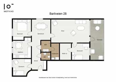 Arealer er målt med laser på stedet. Areal summert sammen rom for rom vil være noe mindre enn oppgitt totalt areal. Dette skyldes differansen bestående av innvendige vegger, piper, sjakter etc. Netto romareal inkluderer innebyggede garderobeskap, innkassinger/pipeløp etc. Arealene er beregnet og rom er definert etter dagens faktiske bruk, uavhengig av hva som er godkjent av bygningsmyndighetene.