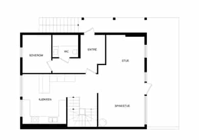 BRA-i: 65 kvm. Entré/gang, trapp, soverom, toalett, kjøkken, stue.