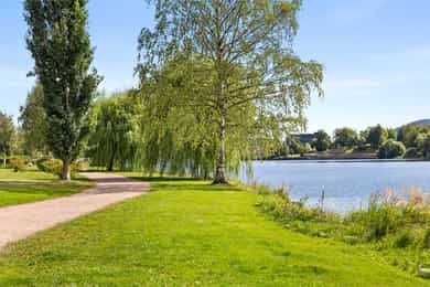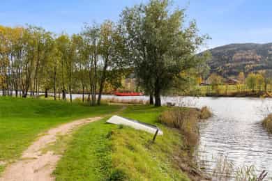 Pen 2(3)-leilighet ved elva - Garasje - Ny terrasse på ca. 21 kvm under oppføring - Selskapslokale