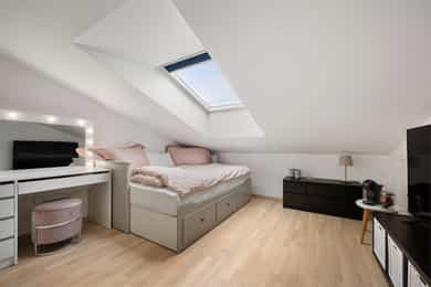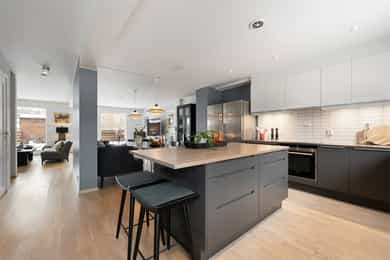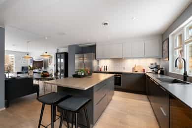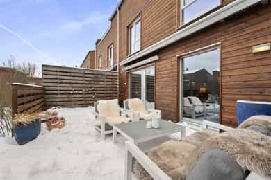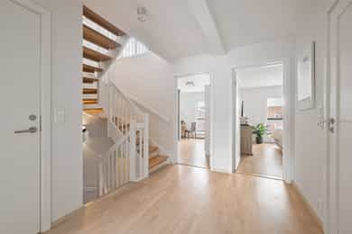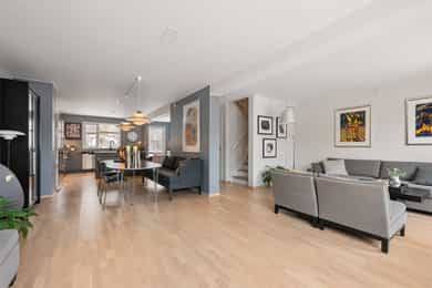 Velkommen til Gjønneshagen 87 – en lys og moderne bolig med gjennomtenkt planløsning over tre etasjer. Her finner du romslig stue/kjøkken med utgang til to solrike terrasser, fem soverom, to flotte bad og eget toalettrom. Boligen har gode oppbevaringsløsninger, moderne kjøkken med kjøkkenøy og integrerte hvitevarer, samt delikate flislagte bad med varmekabler. Perfekt for barnefamilier eller de som ønsker fleksible løsninger med god sammenheng mellom inne- og utearealer. - En lys og meget tiltalende tomannsbolig i tre etasjer - Praktisk og arealeffektiv planløsning som er godt tilpasset en familie - 2 solrike terrasser - 5 soverom, 2 stuer, 2 bad + wc-rom - Godt med lagringsplass i uteboder - Carport m/elbillader - Attraktiv og familievennlig beliggenhet på Bekkestua
