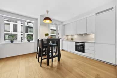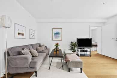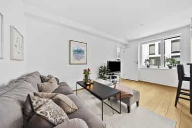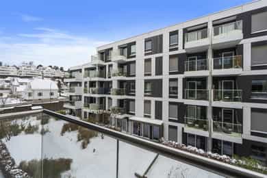 Moderne og tiltalende eierleilighet fra 2016 i 4. etasje m/bl.a. heisadkomst og vestvendt balkong | sentralt og nær skog