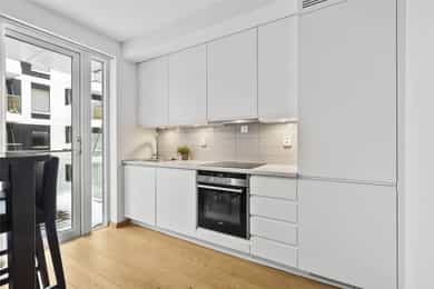 Nordvik v/Jørgen Nyhus har gleden av å presentere denne moderne og tiltalende leiligheten i byggets 4. etasje. Boligen gir et godt inntrykk m/moderne overflater og innredning og er innredet m/bl.a. gang m/garderobeskap, stue m/åpen kjøkkenløsning og utgang til vestvendt balkong, helfliselagt bad/wc/vaskerom, samt soverom. Det er bod i kjeller og sykkelparkering. Eiendommen ligger i et rolig og etablert boligområde på Kaldnes Brygge m/kort gangavstand til bl.a. sentrum, byfjorden, brygga, båthavn, offentlig kommunikasjon, skole, barnehager og Teieskogen. Kort fortalt: - Vestvendt balkong på ca. 5 kvm - 1-stavs parkett - Helflislagt bad - Integrerte hvitevarer - Vannbåren varme - Balansert ventilasjon - Vinduer m/3-lags isolerglass - Callingsystem og portåpner - Heis