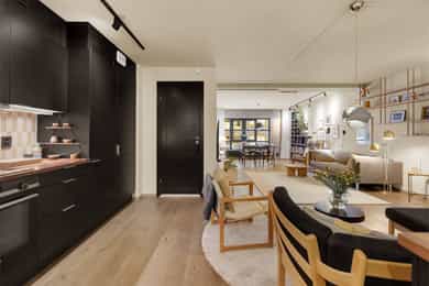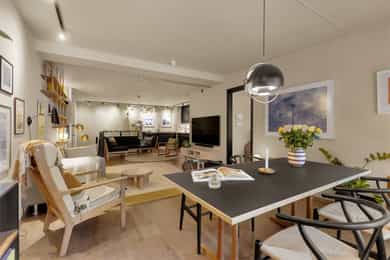 Nordvik har gleden av å presentere Rolf Hofmos gate 10! En rålekker leilighet over to plan med tre soverom, to bad og garasjeplass i lukket anlegg. Boligen er fra 2021 og holder gjennomgående høy standard med vannbåren varme, balansert ventilasjon, Norema kjøkken, enstavs parkett, ståltrapp og smarthusløsning. Den unike townhouse-følelsen preges av mørke gulv, sort stål, murvegger, store fabrikkvinduer og en imponerende takhøyde. En bolig som virkelig skiller seg ut. Rolf Hofmos gate 10 ligger i et spennende og fremtidsrettet område på Ensjø, nær grensen til Kampen. Kort fortalt: