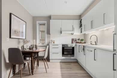 • Endebeliggenhet gir ekstra kjøkkenvindu og godt lysinnslipp