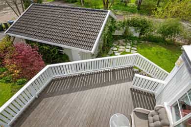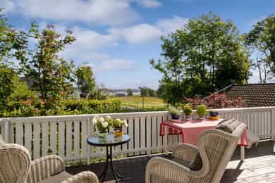 Rosanes/Teie - Klassisk tomannsbolig over 4 plan m/sjøutsikt | Badstue & innglasset veranda | Garasje & solrik terrasse!