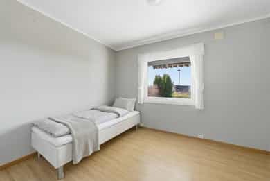 1. etasje: Entré: Fra hyggelig inngangsparti, trer du inn i entré. Fra entré har du videre tilgang til gang som leder videre til de andre rommene i etasjen. Stue: Lys stue med gode vindusflater som sørger for godt lysinnslipp. Stuen tilbyr god møbleringsfrihet og har god plass til sofagruppe med tilhørende møblement, samt spisegruppe. Spisestuen er plassert i tilknytning til kjøkken. Det er peisovn og varmepumpe i stuen. Fra stuen er det utgang til delvis overbygd veranda. Kjøkken: Kjøkkeninnredningen har slette fronter og laminert benkeplate. Kjøkkenet tilbyr godt med skap- og benkeplass. Integrert stekeovn og platetopp. Det er avsatt plass til oppvaskmaskin og kjøleskap i innredningen. Det er plass til et mindre spisebord på kjøkkenet. Bad: Helfliset lyst baderom med varmekabler i gulv. Baderommet er utstyrt med servant over skapinnredning, speil og badekar. Toalettrom: Fra gang direkte tilgang til toalettrom med toalett og servant. Soverom: Det er tre soverom i boligens hovedetasje. Hovedsoverommet er av god størrelse med plass til dobbeltseng, nattbord og annet mindre soveromsmøblement. Det er overskap som gir ekstra lagringsplass over sengen. Soverom 2 er også av fin størrelse med plass til dobbeltseng, nattbord og kontorpult. Soverom 3 har plass til seng, nattbord og garderobeløsning. Kjeller: Gang: Rett fra entre i 1. etasje finner du trappen ned til kjelleren første rom du kommer til er gangen. Romslig gang med gode oppbevarings muligheter. Boder: Fra gang er det adkomst til flere uinnredede rom med betonggulv og ubehandlede murvegger. Rommene fremstår som råkjeller og egner seg godt til lagring, bodplass eller hobbyrom. Et av rommene er i dag innredet som vedrom. Vaskerom: Vaskerom med betonggulv- og vegger. Rommet innehar vask, vaskemaskin og og varmtvannstank.