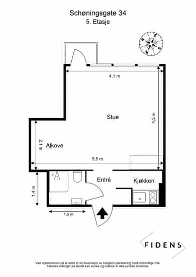 Lys og arealeffektiv leilighet med sentral beliggenhet - Heisadkomst - Balkong - Vv og fyring inkl. - Ingen dok.avgift