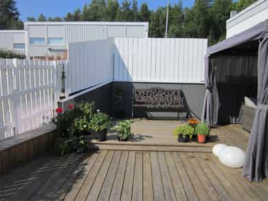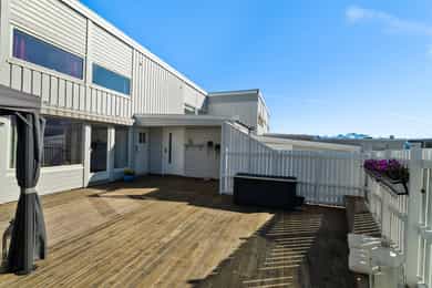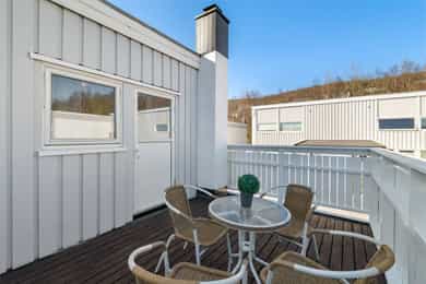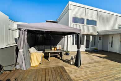 Enderekkehus over to plan med 4 sov og 78m² solrik terrasse + balkong! Fin standard. Barnevennlig område