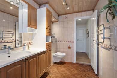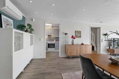 Parkering ved boligen. Fine og store private uteområder med gjerde rundt. Gode rom og arealfordeling i boligen. Entre: Stor terrasse ved ankomst med bod på siden. Lys entre med skyvedørsgarderobe og varme i gulv. Videre er det gang som fører oss til de øvrige rommene og neste etasje. Stue: Stuen strekker seg over store deler av hele første etasje. Her er det store vindusflater som gir godt med dagslys og gode gulvflater som byr på betydelige møbleringsmuligheter i ulike soner. God plass til stor sofagruppe, god stolen, vitrineskap, spisebord med mer. Fra stue er det utgang til terrassen. Romslig terrasse område på hele .. m² som byr på gode solforhold.@ Kjøkken: Kjøkken i delvis eget rom av en fin størrelse, fin plass til spisestue nærliggende kjøkken. Luftig kjøkken med lys-grå fronter og benkeplate av laminat. Godt utbygget med skap og benkeplass. Det er plass til kombi kjøl/fryseskap, oppvaskmaskin og komfyr. Det er kjøkkenventilator med avtrekk ut. Kjøkkenvindusflater byr på godt med dagslys. Våtrom/bad: Flislagt bad med varmekabler i gulv og spottskinne i himling. Badet er innredet med dusjkabinett, større innredning med gode oppbevaringsmuligheter, veggmontert wc og opplegg for vaskemaskin, samt benkeplate over vaskemaskin del og det er opphengt klesstativ med varme. Det er mekanisk avtrekk. Hulltaking er foretatt uten å påvise unormale forhold. Hulltaking er foretatt i gang. Fuktkvotemåling (vekt%) i konstruksjonen ble ikke målt da, veggene er av gips med stål bindingsverk. Det ble gjort fysisk observasjon inne i veggen uten å oppdage avvik. Det ble utført fuktsøk på våtrommet, ingen anmerkninger. Soverom: Boligen har totalt 4 soverom av gode størrelser. Tre soverom i andre etasje og ett påbygget soverom i første etasje. Hoved soverommet er romslig og innredet med stort skyvedørs garderobeskap. De andre soverommene er fine størrelser, god plass til seng, garderobeskap og mer. Boligen har to gode boder. Forøvrig: Alarm. Innvendige vannledninger er av kobber. Innvendig stoppekran er plassert i kjøkkenbenken. Det er avløpsrør av plast. Stakeluke er plassert i underetasje. Det er installert varmepumpe fra 2023. Ventiler i vindu/ vegg og åpningsbare vinduer. Varmtvannstanken er på ca. 120 liter. Plassert i kjøkkenbenk. Automatsikringer og 50A hovedsikring. Det er i forbindelse med salget utarbeidet en tilstandsrapport fra bygningssakkyndig. Tilstandsrapporten er en teknisk gjennomgang av boligen med oppdagede avvik. Forhold som har fått TG2 og TG3 må gjennomgås nøye, da disse indikerer avvik fra normal slitasje og/eller høy alder, med mulig behov for utbedring. Bygningsdeler som har fått TGIU er ikke undersøkt av takstmann. Det er ingen TG3 avvik i tilstandsrapport. Bygningsdeler som har fått TG2: -Det er ingen eller liten lufting i nedre kant av kledning mot grunnmur. -Takkonstruksjonen er lukket, og det er ikke kjent hvordan oppbyggingen er utført. -Balkong/terrasse ligger over innredede boligrom, usikker konstruksjon. Konstruksjonsutforming gir økt fare for skader. -Etasjeskille, det er målt høydeforskjell på mellom 15-30 mm gjennom hele rommet. Tilstandsgrad 2 gis med bakgrunn i standardens krav til godkjente måleavvik. -Bad, gulvet har 1 flis med hakk, forholdet er mer kosmetisk og funksjonen er ivaretatt. -Bad, mer enn halvparten av forventet brukstid er passert på membranløsningen. -Bad, det er ikke påvist tilfredsstillende løsning for å synliggjøre lekkasje fra innebygget sisterne. Ved implementering av innebygget sisterne var det ikke krav om lekkasjesikring, konstruksjonen bør jevnlig observeres. -Det er påvist skader på overflater/kjøkkeninnredning utover normal slitasjegrad. Funksjonen er ivaretatt og utskifting blir av kosmetiske grunner. -Det bør etableres tilfredsstillende avrenning eller lekkasjesikring ved varmtvannstank. -Mer enn halvparten av forventet brukstid er passert på innvendige vannledninger og innvendige avløpsledninger. Det er ikke behov for utbedringstiltak siden anlegget fungerer i dag, men ut ifra alder kan skader plutselig oppstå på eldre anlegg. Kommentar: Utvendig vedlikehold er sameiet/borettslagets ansvar og er derfor ikke tilstandsvurdert. Rapporten begrenser seg til selve leiligheten, og det som normalt vil omfattes av eiers selvstendige vedlikeholdsansvar som seksjonseier. Normalt utgjør dette alt innenfor seksjonens vegger. Tilstandsrapporten tar derfor ikke for seg bygningens fellesdeler som for eksempel tak, yttervegger, grunnmur, drenering, og felles tekniske installasjoner. Verandaer og vinduer vurderes dersom takstmannen finner det relevant for leiligheten. Kjøper må for øvrig sette seg inn sameiers vedtekter/årsberetning for utført og planlagt vedlikehold. Det anbefales å innhente evt. vedlikeholdsplaner/rapporter som omhandler felles bygningsdeler på sameiets bygningsmasse.
