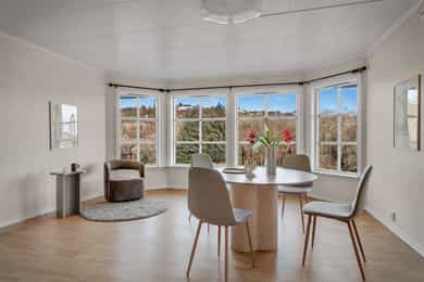 En idyllisk anledning i fremste rekke mot sjø; enebolig passende flere ulike livsfaser, med trappefri adkomst og alt på ett plan. Her bor du særs idyllisk i naturskjønne omgivelser, men likevel svært sentralt med kort vei til servicetilbud, skoler og barnehager. Ettertraktet og barnevennlig boligfelt med nærhet til sjø og de gleder det medfølger.