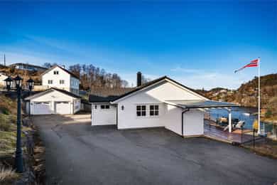 Enebolig fra 2009 i fremste rekke mot sjø! Alt på ett plan. 78m² terrasse og overbygg. Dobbelgarasje med stor bod!