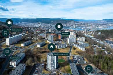 Velkommen til Lauritz Hervigs vei 120! Dette er en romslig 3-roms andelsleilighet i populær stjerneblokk på Fjell. Her bor du i et veletablert boområde, med gangavstand til kollektiv transport, dagligvarebutikker og skoler. Høydepunkter: - Heis - 2 fine soverom - Lagt nytt gulv på soverom i 2025 - Kjøkken med nye profilerte fronter i 2025 - 2 balkonger med flott utsikt og gode solforhold - Praktisk innvendig bod - Matbod og bod i felles bodområde - Mulighet for parkering etter annsientet/venteliste - Praktisk med 2 minutters gange til bussholdeplass - Ca. 10 minutter med bil til Drammen togstasjon og sentrum - Barnehage, skoler og dagligvarebutikk i kort gangavstand - Nærhet til marka med flotte turmuligheter hele året
