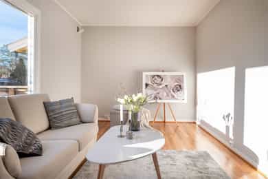 Innbydende og velholdt halvpart av vertikaldelt tomannsbolig. Nytt kjøkken, egen hage og solrik terrasse. Kjeller.