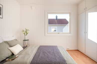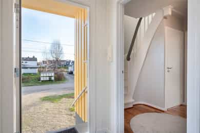 Ole Hansens vei 3 ligger fem minutter utenfor sentrum, i et pent og ordnet nabolag av tomannsboliger og eneboliger, like ved Sentralidrettsanlegget. Lisleby tilbyr alle daglige nødvendigheter og en overflod av aktivitetstilbud for både barn og voksne. Skole og barnehage finnes i kort gangavstand. Sentrumsbussen anløper jevnlig, men sykkel går like fint. Tomannsboligen fra 1962 strekker seg over to etasjer med både loft og kjeller. Vinduer og tak ble oppgradert i 2004 og 2014, og med sin gule kledning fremstår boligen frisk og velholdt. Den solrike terrassen er også ny, og nedenfor vokser gressplenen og et epletre. Nylig ble de fleste flater innendørs pusset opp, og vi møter en fin og åpen familiebolig med nytt kjøkken, nyere bad og tre fine soverom.