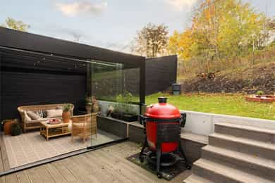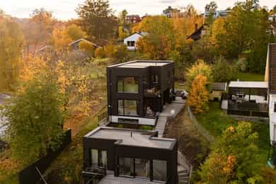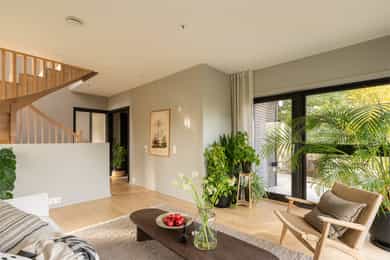 • Tre etasjer gir fleksibel planløsning med to stuer, tre bad og stilrent kjøkken fra Oslo Kjøkkenstudio med egen spisestue og utgang til uteplass.