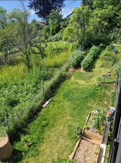 • Usjenert tomt med grønnsakshage, stor terrasse og dobbelgarasje på nedsiden.