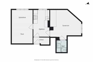 BRA-i: 45 kvm. Gang, kjøkken, stue, bad, og 1 soverom.