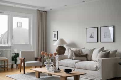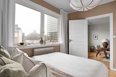 Fin og delikat 3-roms | To solrike balkonger på 5 og 1kvm | Varmtvann og fyring inkl | Heis | IN-ordning | Takhøyde 2,6m