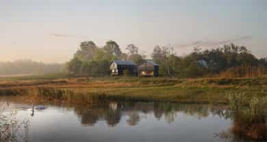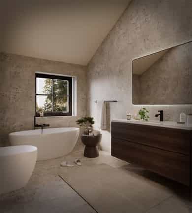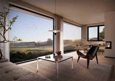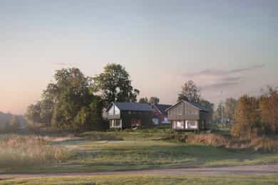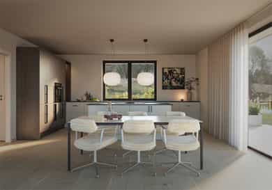 - Arkitektur i dialog med omgivelsene - På en høyde med usjenert utsikt utover golfklubbens bølgende, grønne heier, oppføres to lekre eneboliger. Med boligenes spenstige form har Line Solgaard Arkitekter har latt seg inspirere av det tradisjonelle stabburet, som vi finner helt tilbake til 1600-tallet. Det har blitt omformet, forenklet og modernisert, men vi ser fortsatt utgangspunktet skinne gjennom. Prosjektet er utviklet i tett samarbeid med byantikvaren og tar utgangspunkt i stedets særpreg og historiske kvaliteter. Med sin tidløshet, glir boligene perfekt inn i det frodige, historiske landskapet. En inntrukket førsteetasje forsterker inntrykket av stabbur, og i nordenden står boligene på påler, noe som gir et lett svevende inntrykk. Den brunsorte kledningen er smal og stående og får innslag av ornamentikk. Saltakene tekkes med skiferliknende takstein. Mot nord åpnes fasaden i store heldekkende vinduer i begge etasjer som utnytter den fantastiske utsikten utover golfbanene til fulle. Oppe i andre etasje løfter vinduene seg høyt og følger skrågavlen. Disse vinduene er rutete, og gir faktisk assosiasjoner til japanske vinduer. Stående på utsiden fremstår de imponerende, og det er lett å forestille seg at rommene der opp må ha en fantastisk utsikt og et herlig lysinnslipp. - Tomt - Ved ankomst møter du først en kledelig carport for begge boligene. Den følger husene i farge, materialer og utforming. Stier leder bort til de to boligene som som disponerer hver sin naturlige del av tomten på ca 500m2. Gårdsplass og gangområder gruses og hagene leveres klare til såing. Boligene har begge 12,5 kvm terrasser - én mot vest og den andre mot nordvest. Det vil bli god tilgang på sol, og i hagene finnes dessuten god plass til å etablere andre, naturlige uteplasser. Det følger med en utomhusplan som inspirasjon, og det er gode muligheter til å etablere en drømmehage her, med frukttrær eller en liten grønnsakshage. - Svalt, minimalistisk og åpent - Du går inn i en deilig sval entré og merker straks den over gjennomsnittlig gode takhøyden, ikke veldig mye, men nok til å åpne opp atmosfæren litt ekstra. Boligens utforming er svært helhetlig. Dette oppnås ved å gi liknende rom et slektskap i materialbruk, farger og innredning. For eksempel møter du de samme store, italienske naturflisene i entreen, som på vaskerommet, og de to badeværelsene ovenpå. Interiøret er utformet av de dyktige interiørarkitektene Kaya & Co. Vegger og himling er malt i samme farge og møtes listfritt. Den samme renheten ser vi rundt vinduene. Fravær av dekor og ornamenter gir oss pene flater som vi selv skal fyller med bilder og møblement. Veggenes fargepalett danner en firklang av naturlige farger - fra ganske lyse og over i varme mellomtoner. Den matte malingen gir en nesten fløyelsaktig overflate. - Gulv og klima - Under føttene har du en flott, premium, én-stavs eikeparkett. Gulvene flyter helhetlig i boligens to etasjer. Alle rom i første etasje har varmekabler og varmefolie, liksom baderommene ovenpå. Boligens ventilasjon er balansert, så forvent god luftkvalitet. I stuen står en elementpeis, som strekker seg elegant helt opp til himlingen. - Vinduer mot naturen - Kombinert stue og kjøkken utgjør nesten hele førsteetasje og har vinduer i fire himmelretninger, og utnytter boligens unike beliggenhet. De store vinduene strekker seg helt ned til gulvet og forener rommet med panoramaet utenfor. De brunsorte rammene fremhever den vidstrakte utsikten - der golfbanens grønne, bølgende sletter bades i morgensol og gløder i sen kveldssol, inntil et slør av dis svever over gresset. Ovenpå i hovedsoverommet og i stuen, finner du de høye trapesformede vinduene som strekker seg opp mot mønet. Himlingen er åpen, og skråtaket løfter seg svært høyt. Dette resulterer i usedvanlig vakre rom. - Badeværelser - Hovedsoverommet er velsignet med sitt eget bad, som nås gjennom en stor walk in-garderobe. Også på badet åpner skråtaket opp rommet. Du kjenner igjen flisene fra entreen. Den naturlige overflaten likner på en mellomting mellom marmor og sandstein, og de dekker både vegger og gulv. Armaturer og dusjvegger har samme sorthet som husets vindusrammer. Innredningen kommer fra Sigdal, med en mørk brun overflate. Rett over gangen finner du baderom nummer to, som er utstyrt med et frittstående badekar. - Sosialt på kjøkkenet - Kjøkkenet har innredning fra Sigdal med en kjøkkenøy som peker ut mot spisestuen og skaper kontakt mellom kokk og gjester. Kokesone har nedtrekk av luft. Den ene helveggen med skap og hvitevarer har fronter av brun eikefinér. Mens resten av frontene har en glatt overflate i lys kornfarge. Det hele er svært harmonisk, og innbyr til ro og sosialt samvær. Spisestuen har en perfekt plass ved de store balkongskyvedørene, trærne og utsikten utgjør et maleri som tilfører måltidet en ekstra dimensjon. Utenfor ligger terrassen i flukt med stuegulvet. Der ute, med kveldssol og utsikt, blir du nok sittende lenge om sommeren. - Hvile i andre etasje - Trappen har åpne trinn i ask og vanger og håndløper i furu. Det åpne trapperommet og de åpne trinnene skaper fin kontakt mellom etasjene. Du kommer rett opp i loftstuen med det høye mønevinduet. Her ser vi pipeløpet fra førsteetasje trenge gjennom, og slippe restvarmen, før røret forsvinner opp gjennom skråtaket. Gangen løper tvers gjennom hele etasjen med vinduer i begge ender med adgang til alle rommene. Vi finner 3 store soverom her, nok til en familie. - Gode tilvalgsmuligheter - Boligene er strøkne som de er. Ingenting er tilfeldig. Alt er smakfull sammensatt. Likevel er det godt å få muligheten til å være med og forme boligen sin. Her er det mulig å justere gulv, veggfarger, armaturer og elektroinstallasjoner. Jo tidligere du er ute, jo mer får du bestemme. Se leveransebeskrivelse vedlagt salgsoppgaven for detaljer rundt tilvalg. Utbyggeren har de senere år stått b