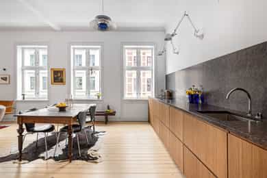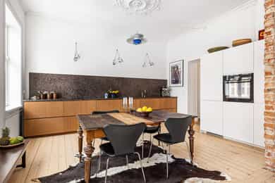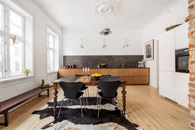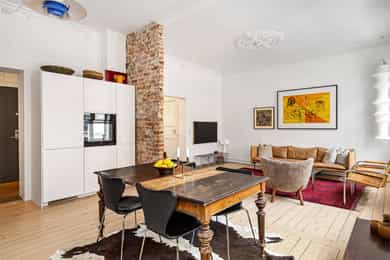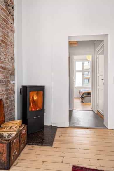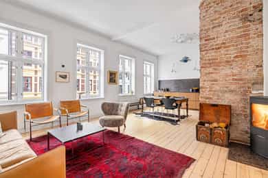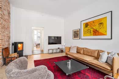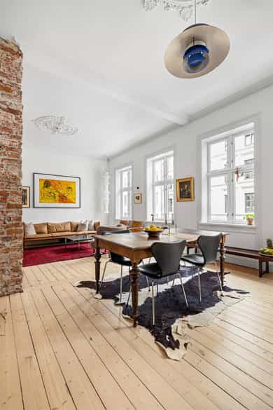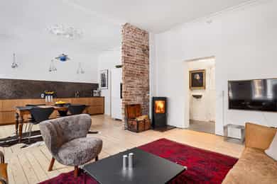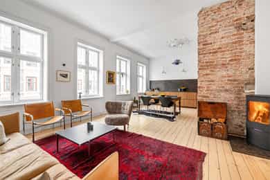 Klassisk og sjarmerende 3-roms ved Sofienbergparken | Åpen stue/kjøkken | Peis/ovn | 3,2m takhøyde m/ store vindusflater
