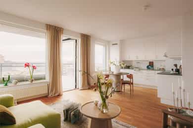 Velkommen til Hans Nordahls gate 62! Dette er en litt spesiell og annerledes leilighet beliggende på hjørnet av bygget i 9.etg. Grefsen Stasjon har en svært sentral og populær beliggenhet med gangavstand til alt av butikker, kollektivtransport og servicetilbud. Akerselva med flotte turmuligheter ligger også like i nærheten. Området er også svært familievennlig med tanke på både skoler og barnehager m.m. Kvaliteter: - Bygg fra 2016 med heisadkomst - Beliggende i 9. etasje med fantastisk utsikt og ingen innsyn - Svært god standard med minimalt av bruksslitasje - Lys og luftig stue i åpen løsning mot kjøkken - To soverom, samt et fleksibelt rom som f.eks. kontor, lite barnerom, walk-in-closet m.m. - Kjellerbod på ca. 5 kvm - Mulighet for kjøp av garasjeplass for kr. 400.000,-