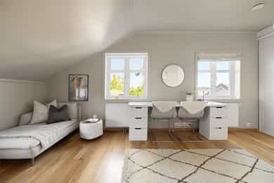 BRA-i: 183 kvm. Trapperom, to stuer, fem soverom, tre bad og walk in-garderobe.