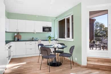 Stilren 2-roms selveier i 2.etg - Sydvestvendt balkong på 15m² - Garasjeplass, heis og bod - Kort vei til buss og tog