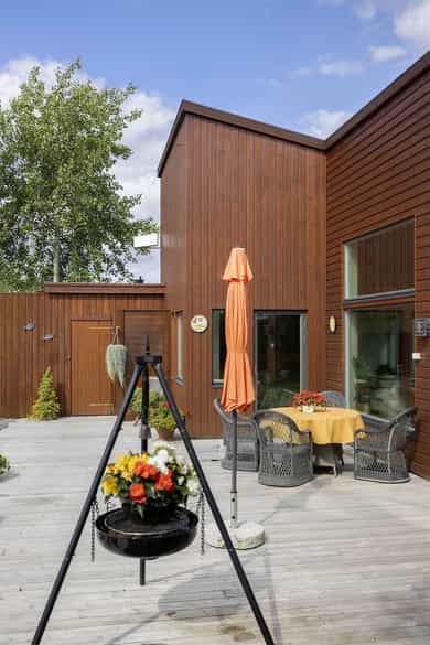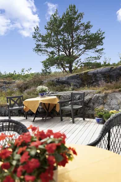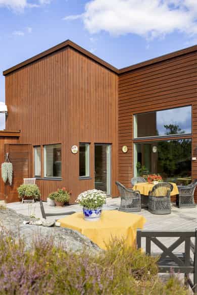 Det er særdeles gode solforhold på denne eiendommen, på stor vestvendt terrasse og terrasse mot syd. Her kan man nyte solen fra tidlig morgen til sen kveld!