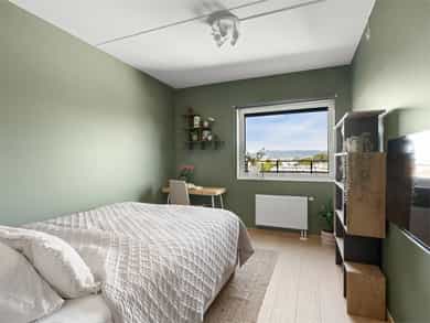 - Utvendig solskjerming på to soverom langs balkong samt stort vindu fra stue.