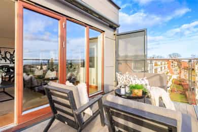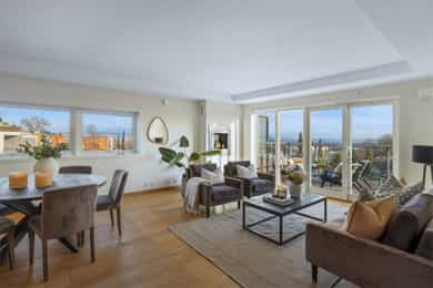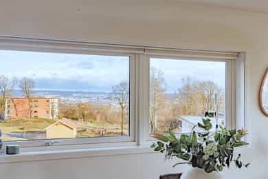 Attraktiv 3-R hjørneleilighet i 5. etasje med heis - Flott utsikt og to balkonger med gode solforhold - Garasjeplass