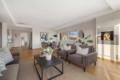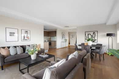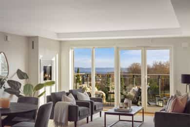 Velkommen til Ullern Allé 41 -En lys og tiltalende 3-roms hjørneleilighet i 5. etasje med heis. Leiligheten har en svært god internbeliggenhet mot grøntområder og flott utsikt over fjord og by. Rolig og attraktiv beliggenhet med dagligvare, t-bane, buss og turmuligheter i umiddelbar nærhet.