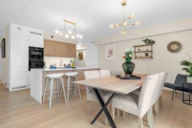 Stor 4-roms andelsleilighet med svært god intern beliggenhet. Gode solforhold og flott åpent utsyn/utsikt. Sentralt rett ved Fornebu S. Leiligheten har en svært innholdsrik planløsning med blant annet 3 soverom, 2 bad, separat vaskerom og to walk-in closet.