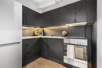 Integrerte hvitevarer på kjøkken medfølger.